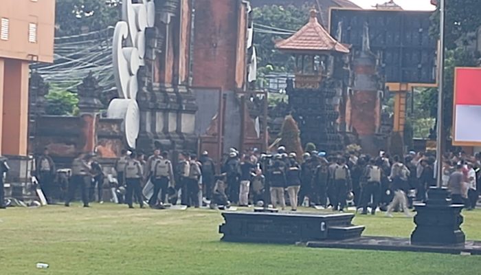 Denpasar ( Aksennews.com ) —– Pasukan Pengendalian Huru-Hara (PHH) Brimob Polda Bali menjadi garda terdepan dalam mengamankan aksi demonstrasi di depan Gedung DPRD Provinsi Bali yang berlangsung sejak Sabtu sore, 30 Agustus 2025. Aksi yang awalnya berjalan damai berubah ricuh ketika massa semakin banyak berdatangan pada malam hari dan melakukan tindakan anarkis.