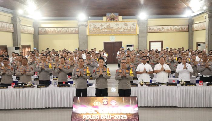 DENPASAR ( Aksennews.com ) —– Kapolda Bali Irjen. Pol. Daniel Adityajaya, S.H., S.I.K., M.Si., didampingi Wakapolda Bali Brigjen. Pol. I Komang Sandi Arsana, S.I.K., M.H., memimpin langsung Apel Kasatwil Polda Bali sebagai upaya untuk memberikan arahan dan penekanan kepada seluruh Pejabat Utama (PJU) Polda, Kapolres/Ta jajaran, serta para perwira menengah (Pamen) Polda Bali di Gedung Presisi Polda Bali, Rabu (03/12/2025) pagi WITA.