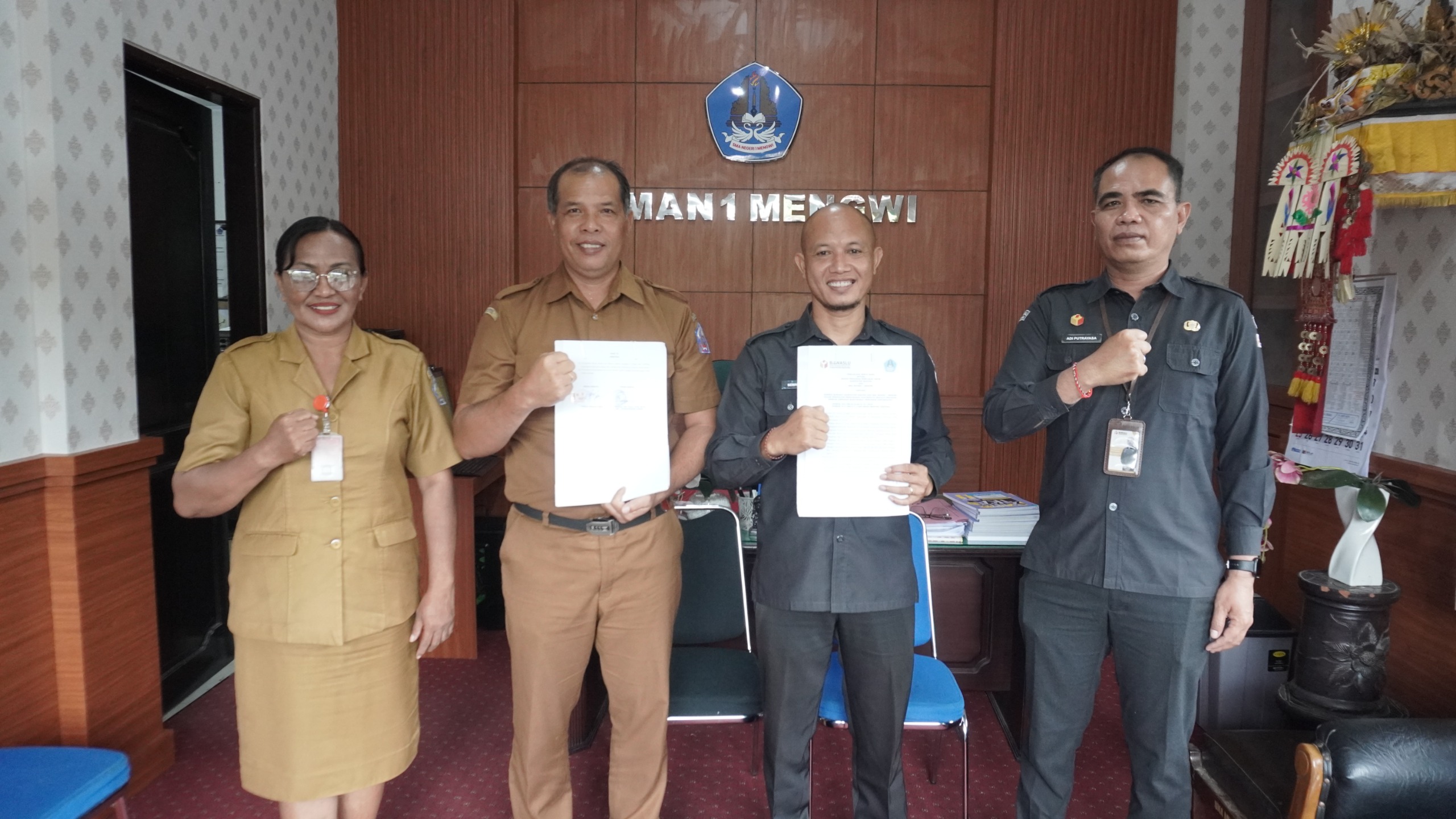 BADUNG ( Aksennews.com ) —– Bawaslu Badung. Upaya memperkuat pengawasan partisipatif terus dilakukan melalui kolaborasi lintas sektor. Bawaslu Kabupaten Badung bersama SMAN 1 Mengwi melaksanakan penandatanganan Perjanjian Kerja Sama (PKS) dalam Penguatan Pengawasan Partisipatif melalui Program GEMPAR (Gerakan Masyarakat Pengawas Partisipatif). Kegiatan tersebut berlangsung di SMAN 1 Mengwi, Senin (26/1/2026). SMAN 1 Mengwi menjadi sekolah pertama yang menyetujui Kerjasama ini. Selanjutnya, Bawaslu Badung memperluas kolaborasinya dengan semua SMA yang ada di Badung.