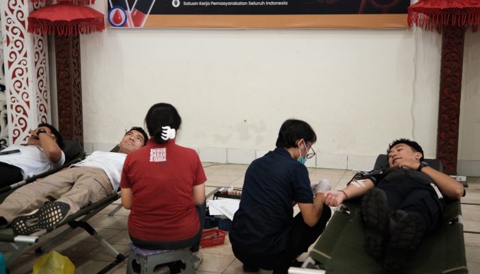 Di sisi lain, pengalaman menarik datang dari salah satu petugas, Dwi Rangga, yang untuk pertama kalinya mengikuti donor darah. Ia mengaku sempat merasa gugup, namun akhirnya memberanikan diri untuk berpartisipasi. “Awalnya saya ragu, tapi saya mencoba. Semoga apa yang saya berikan bisa membantu orang lain,” tuturnya.