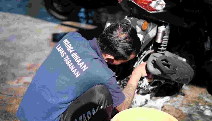 TABANAN ( Aksennews.com ) —– INFO_PAS. Sarana Asimilasi dan Edukasi (SAE) Cuci Motor Lembaga Pemasyarakatan (Lapas) Kelas IIB Tabanan dipadati pelanggan menjelang Hari Raya Tumpek Landep, Jumat (17/4). Antrean yang terus berdatangan menunjukkan tingginya kepercayaan masyarakat terhadap layanan yang dikerjakan langsung oleh Warga Binaan (WB).