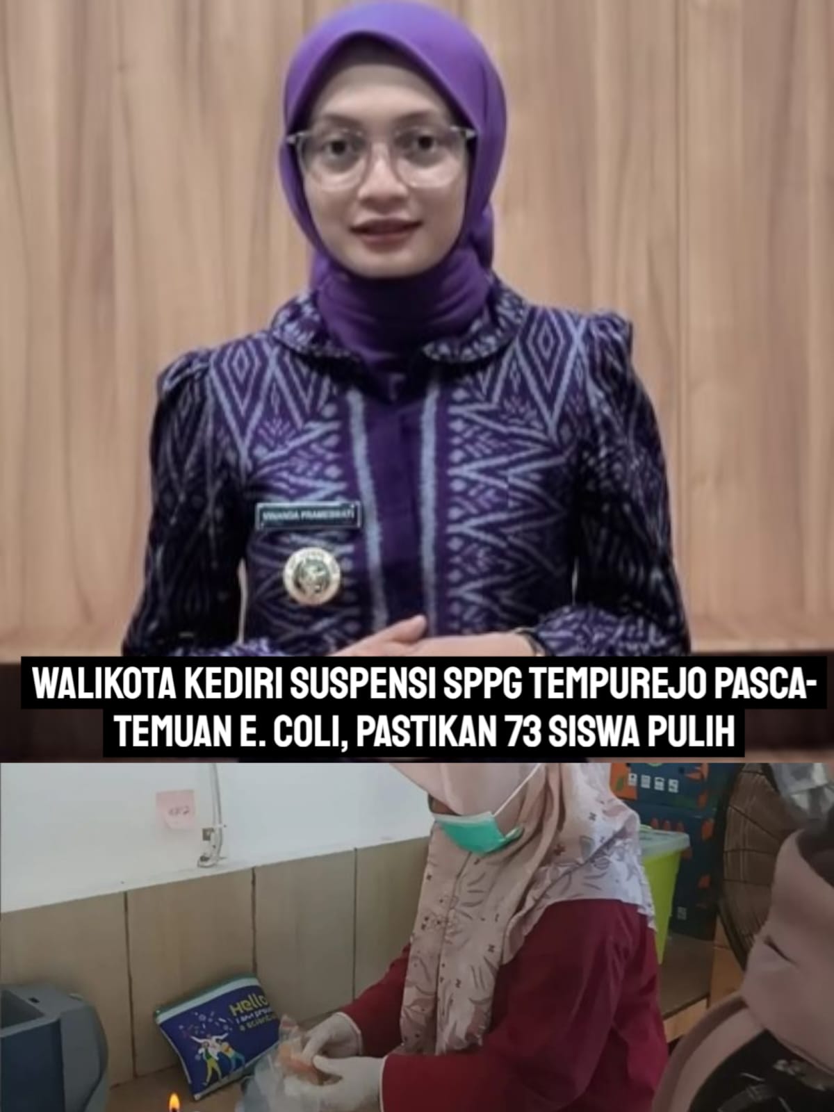 KEDIRI || AKSENNEWS – Walikota Kediri, Vinanda Prameswati, mengambil tindakan tegas dengan menghentikan sementara (suspensi) operasional Satuan Pelayanan Pemenuhan Gizi (SPPG) Tempurejo. Langkah ini diambil menyusul hasil uji laboratorium yang mengonfirmasi keberadaan bakteri Escherichia coli (E. coli) pada sampel makanan Program Makan Bergizi Gratis (MBG) yang menyebabkan keracunan massal.