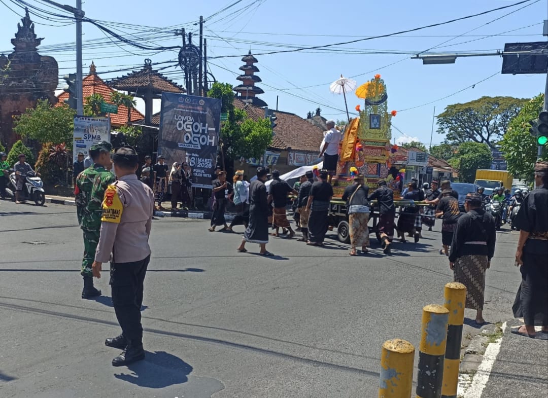 Sepanjang jalannya prosesi, Bhabinkamtibmas bersama Babinsa bersinergi dengan perangkat desa adat, serta pecalang mengawal jalannya kegiatan agar berlangsung aman, tertib dan lancar.